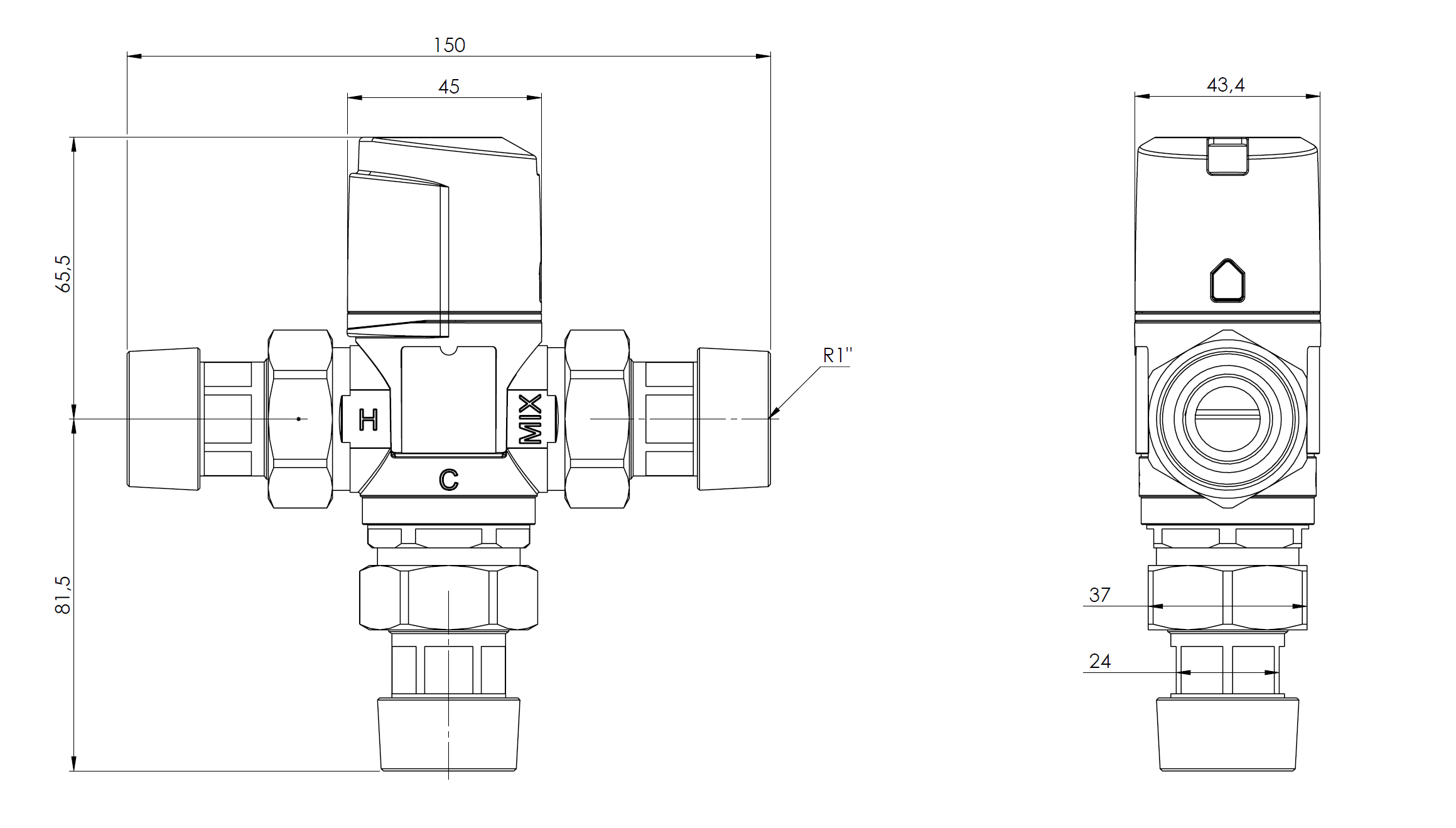Pod pokrywką chroniącą przed przypadkową zmianą nastawy umieszczono pokrętło do ustawienia temperatury wody zmieszanej.