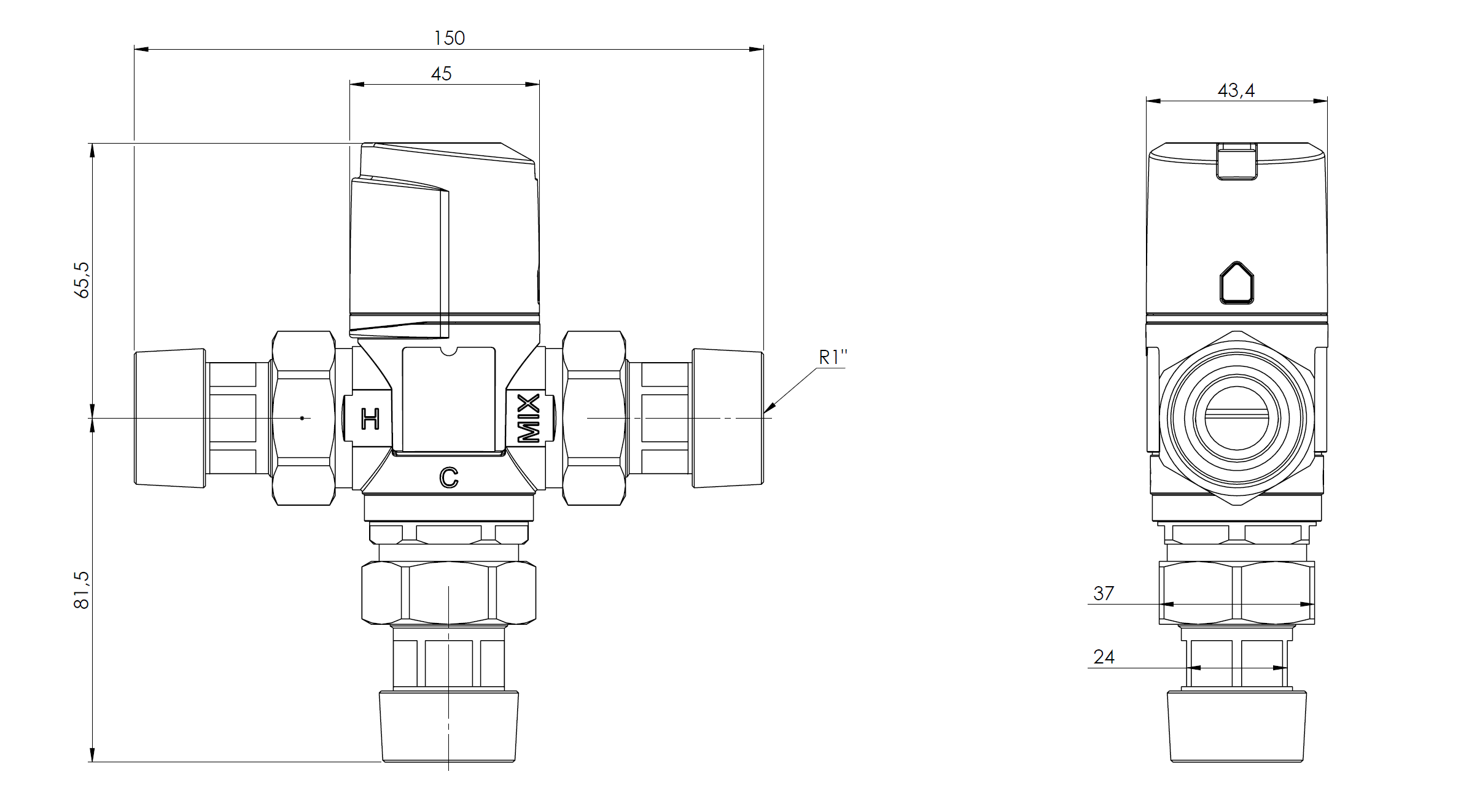 Pod pokrywką chroniącą przed przypadkową zmianą nastawy umieszczono pokrętło do ustawienia temperatury wody zmieszanej.