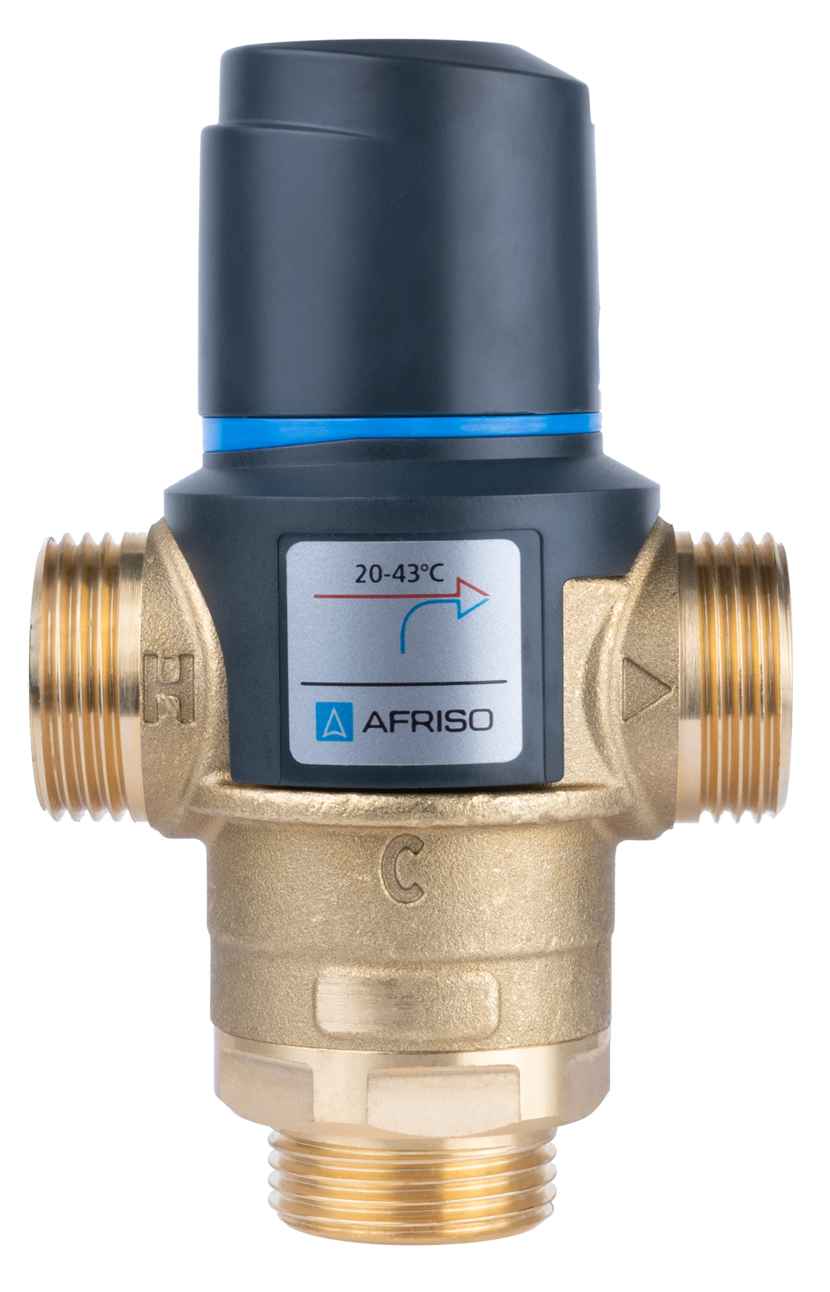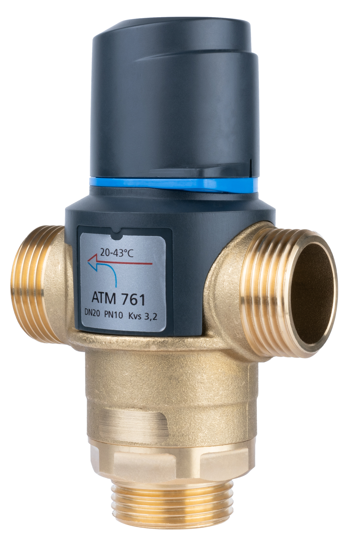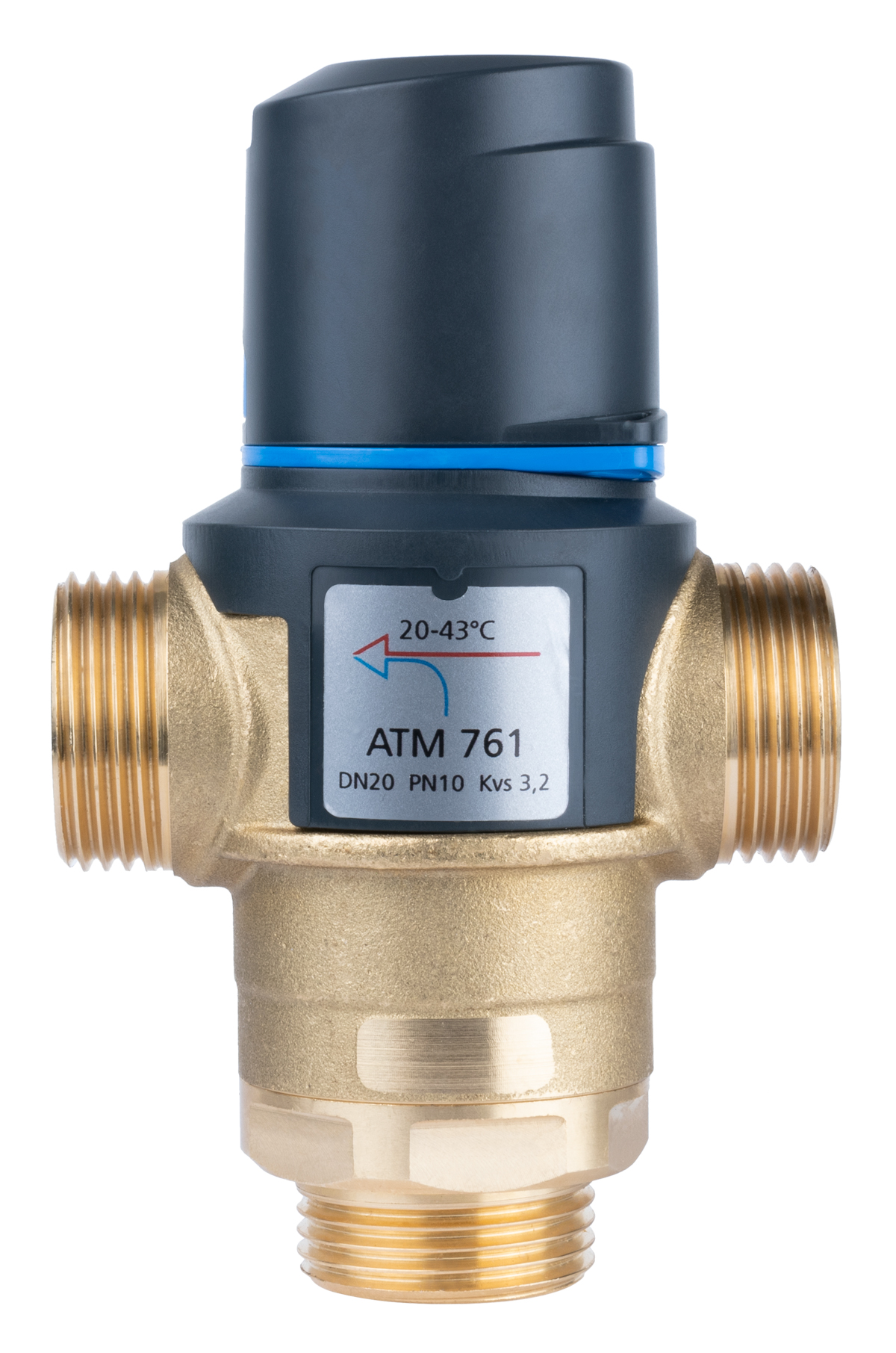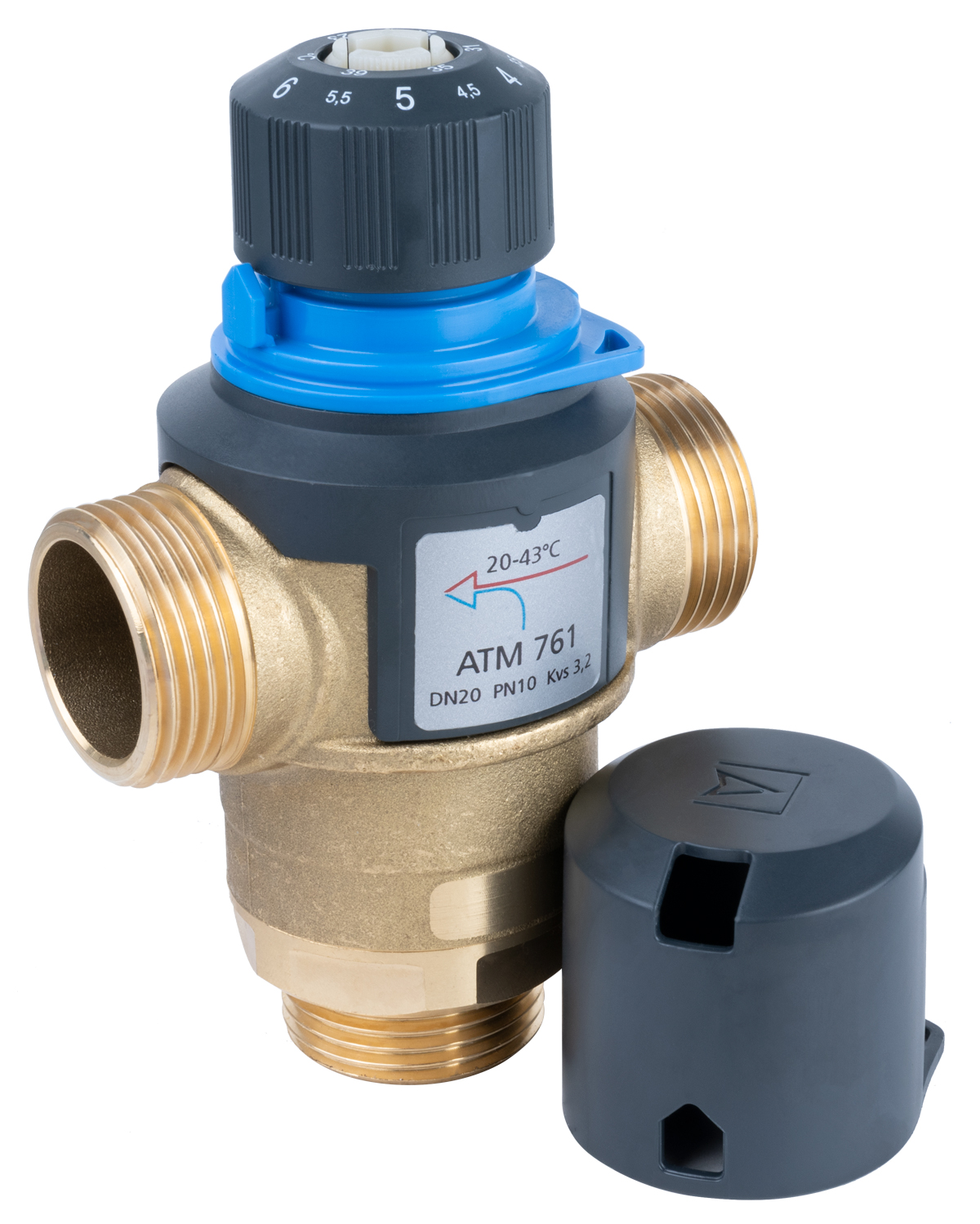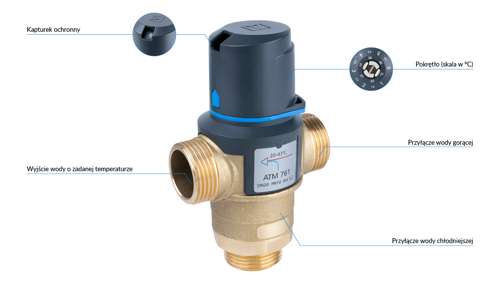 Zawór regulacyjny termostatyczny do wody ciepłej AFRISO ATM 761 mosiądz GZ 1'', DN 20, zakres temp. 20-43'C, Kvs 3.2 m3/h, maksymalna temperatura 90'C, maksymane ciśnienie 10 bar