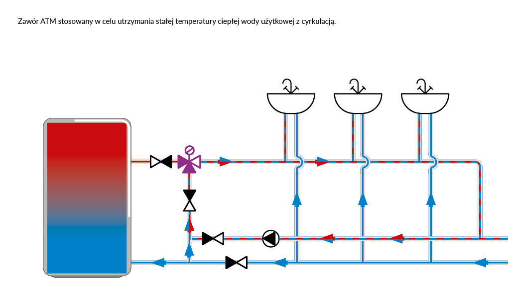 - Stosowany w instalacjach ogrzewania podłogowego i c.w.u.- W instalacjach c.w.u. montowany między zasobnikiem a punktami poboru wody.