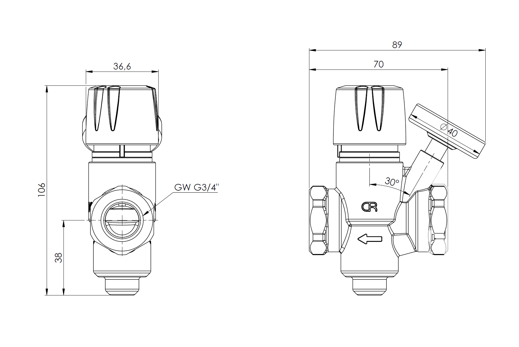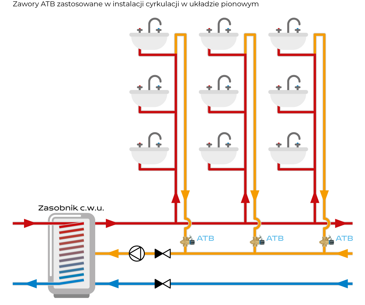 Stosowany w instalacjach cyrkulacji c.w.u.Montowany na powrocie z danego pionu / gałęzi cyrkulacji.