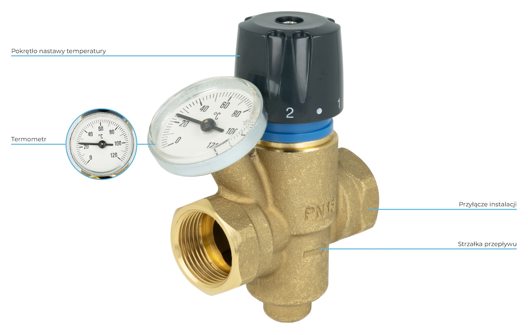Utrzymuje w danym pionie / gałęzi stałą temperaturę, zgodną z nastawą na pokrętle, równoważąc tym samym całą instancję.