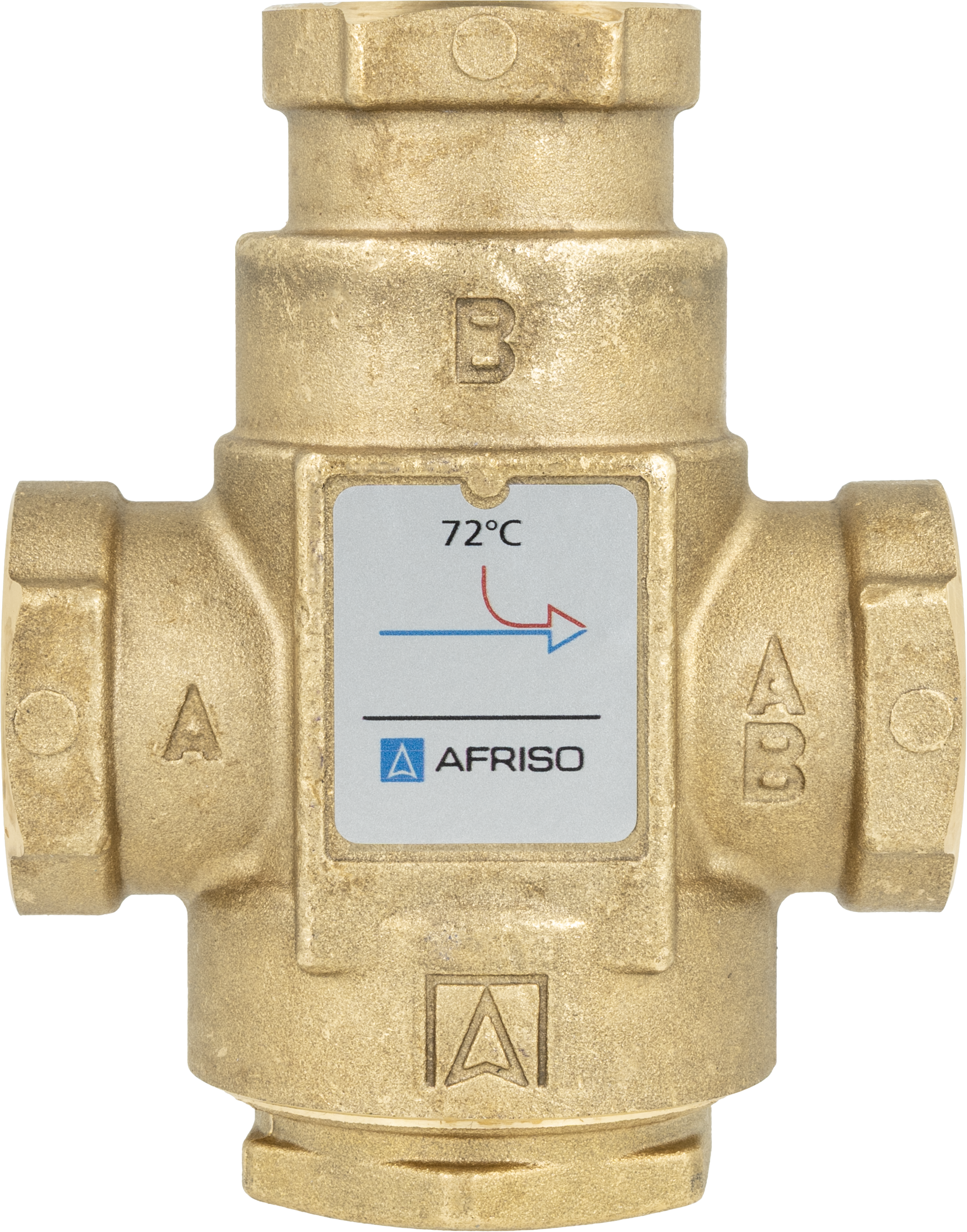 Wymienny element termostatyczny umieszczony w zaworze ustawiony fabrycznie na stałą temperaturę 72°C.