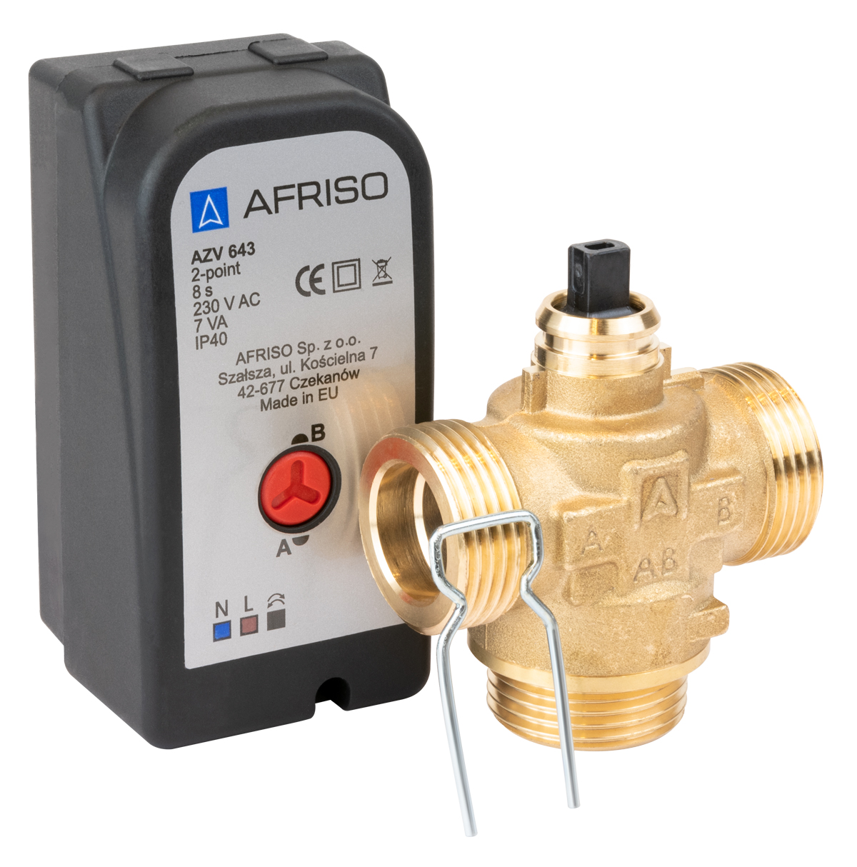 Zawór trójdrożny AFRISO AZV 643 mosiądz, średnica DN 20 gwinty zewnętrzne silnik elektryczny