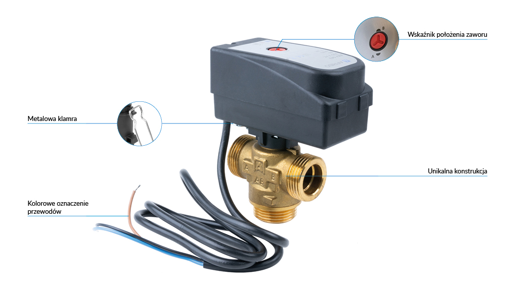 W połączeniu ze sterownikiem 2-punktowym (np. termostatem TC2) automatyzuje pracę instalacji.