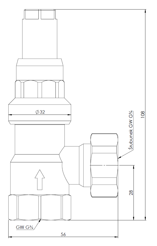Zawór upustowy różnicy ciśnień DU z nastawą, kątowy, 0,1÷0,5 bar, GW G3/4''