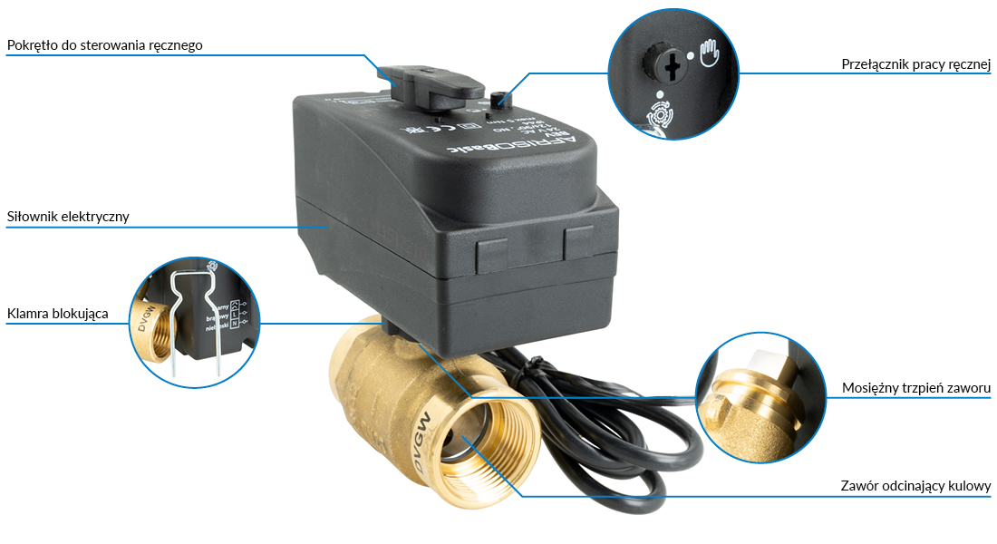 Siłownik sterowany sygnałem 2-punktowym (SPST) z możliwością pracy ręcznej.
