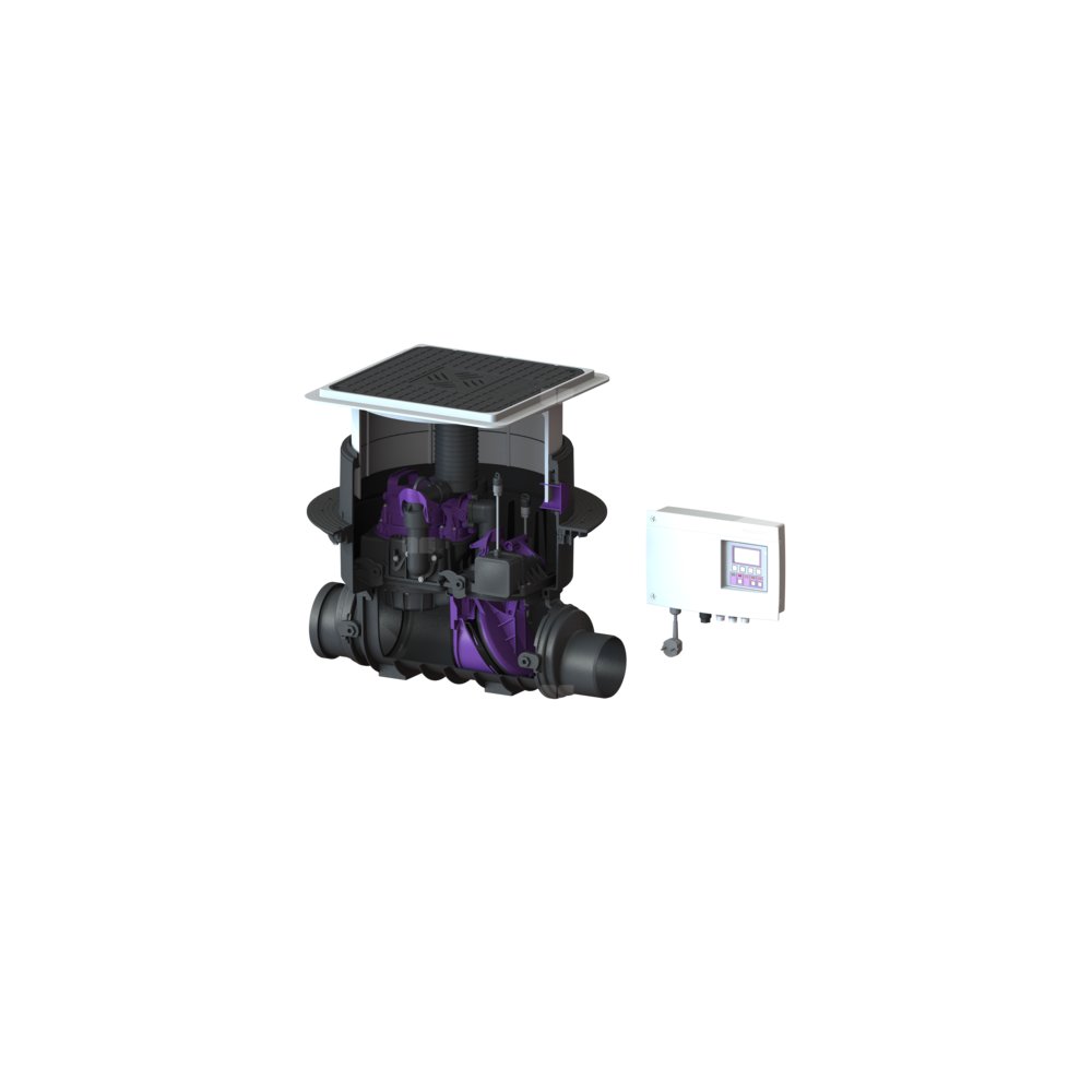 Urządzenie przeciwzalewowe klasy premium do ścieków zawierających fekalia i bez fekaliów jest wyposażone w pompę i system zamykania za pomocą silnika. W normalnym stanie przekrój rury jest otwarty. W przypadku przepływu zwrotnego system zamykania za pomocą silnika zostaje automatycznie zamknięty. Odprowadzanie w trakcie fazy przepływu zwrotnego odbywa się przez pompę ze zintegrowanym mechanizmem rozdrabniającym. Sterowanie następuje przy pomocy przyjaznego dla użytkownika urządzenia sterującego, które można opcjonalnie poprzez kontakt bezpotencjałowy włączyć w system zarządzania budynkiem lub które może poprzez złącze GSM generować komunikaty zbiorcze o alarmach i zakłóceniach.