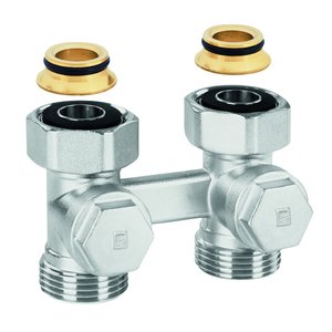 Zawór VKE, prosty, podwójny z regulacją, do instalacji 1-rurowych, nypel redukcyjny 3/4" na 1/2" w zestawie