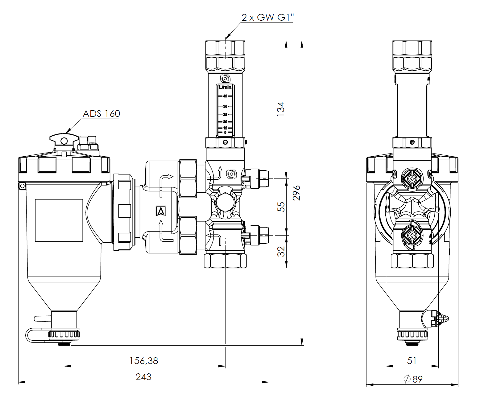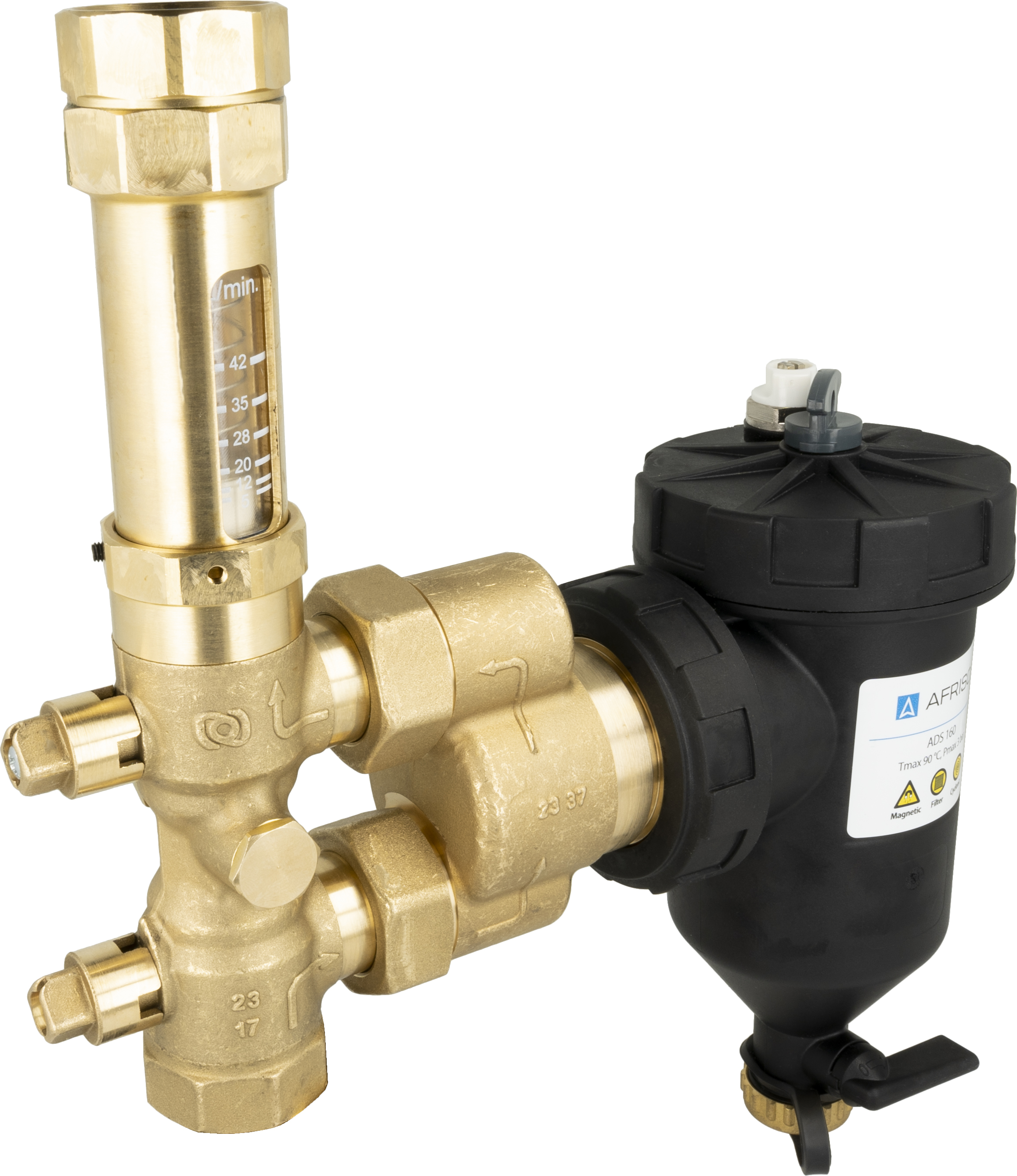 Zespół armatury serwisowej AHS 560 do pomp ciepła, z separatorem zanieczyszczeń ADS 160, z przepływomierzem 5÷42 l/min, przyłącza GW G1''