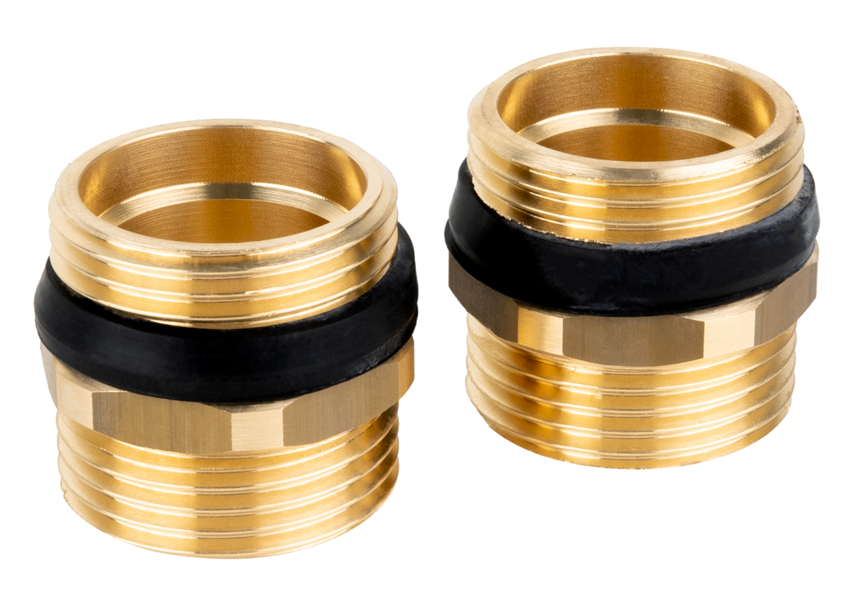 Zestaw dwóch mosiężnych nypli G1'' z uszczelkami stożkowymi