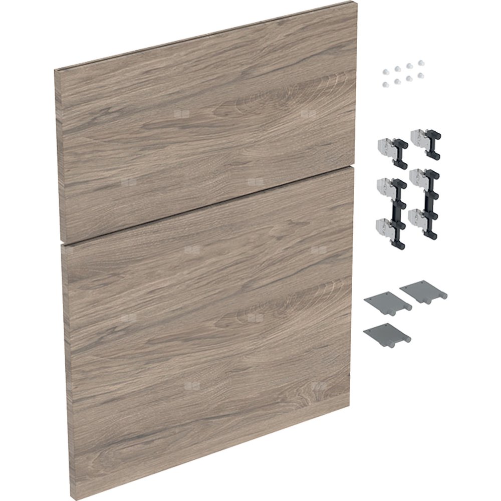 Zestaw frontów szuflad (2 szt.) do niskiej szafki bocznej, z dwoma szufladami GEBERIT iCon, kol. orzech włoski hickory melamina, struktura drewna szer.450 mm