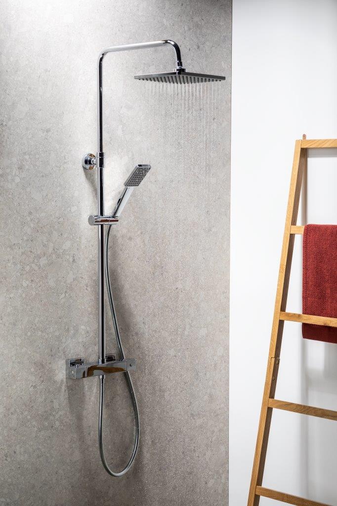 Deszczownia logon z baterią termostatyczną natryskową ścienną chrom