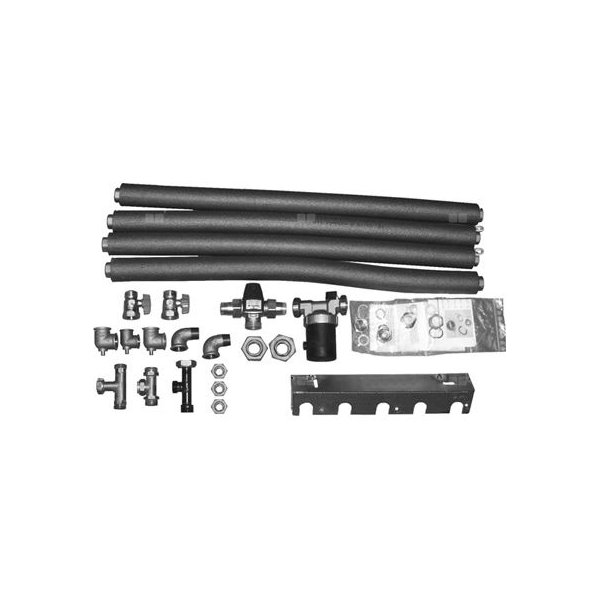 Zestaw przyłączeniowy wody ciepłej i zimnej, z termostatycznym zaworem mieszajacym i wysokowydajną pompą cyrkulacyjną c.w.u do przyłączenia ze strony lewej, prawej lub z tyłu do centrali CSZ,