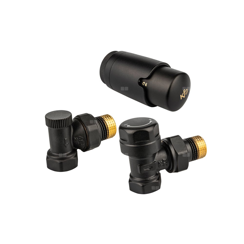 Zestaw termostatyczny grzejnikowy, kątowy KOMFORT PRO, Czarny