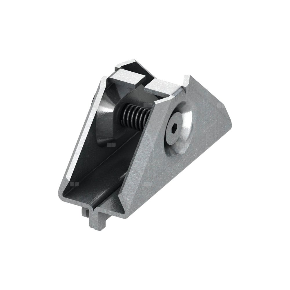 Łączniki narożne do trwałego, narożnego łączenia z kształtownikami TECEprofil; zmontowana jednostka ze stali ocynkowanej; śruby sześciokątnej M 5 (SW 3) i sprężyny naciskowej.