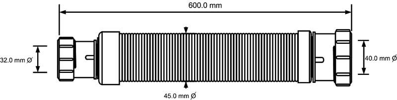 Złączka montażowa elastyczna o długości 500mm z możliwością skrócenia do wymaganej długości, końcówki nakrętne o wymiarach 32x40mm.